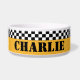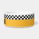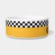 Fügen Sie der Abendessenzeit Ihres Haustieres einen Vintagen NYC-Stil hinzu. Die klassische Taxifarbe und die Streifen an der Schachbrettbrücke sind im klassischen Schachbrett-Stil gehalten. Die Vintage nostalgische Optik zu vollenden, ist der Name des Haustieres in der Schablonenschrift. Beep Beep - es ist Supertime!