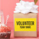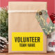 Gelbes Volunteer Abzeichen mit Titel und Teamname in schwarz fett gesans serif Schriftart auf gelbem Hintergrund. Auch perfekt für Praktikanten, Crew, Mitarbeiter, Gruppe, Team und vieles mehr.