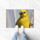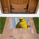 Diese Türmatte hat eine Gelbe Finke, die auf ihr abgebildet ist.
