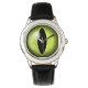 Cat Eye - CAEY100 © Sunny Mars Designs. Trendy coole, speziell bedruckte Armbanduhr aus gelber und limig grüner Katzenauge mit naher Iris aus Katzenaugen. Perfektes Geschenk für Katzenliebhaber und andere Freunde der Katze. Die Uhr ist vollständig anpassbar. Entwerfen Sie Ihre eigene einzigartige Uhr, indem Sie verschiedene Farben, Armbänder und Stile wählen: klassischer Edelstahl, Vintager schwarzer Ledergurt, zweifarbiger Gold und Silber, sportlich weiß oder rosa, Kristall aus schwarzem oder weißem Emaille, rosa oder silberfarbener Glitzer und verschiedene farbige Kinderuhren. Macht ein großartiges Geschenk für jeden Mann, jede Frau oder jedes Kind.