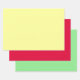 Gelbes Umhüllungspapier, rotes Umhüllungspapierblatt und grünes Umhüllungspapier. Ein Trio aus rotem, gelbem und grünem Packpapier für Geburtstagsgeschenke und mehr.