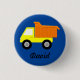 Niedlicher Cartoon-Spielzeug-LKW. Benutzerdefinierte Schaltflächen. Blauer Hintergrund. Bearbeiten Sie den Namen, um diese Schaltflächen personalisiert zu machen. Geschenkidee für Kinder.