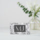 Visitenkarte in Edelstein-Skulptur, klassischer grauer/grauer/weißer Marmor, mit einem zarten Webbettmuster