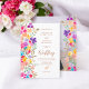 Moderne, feine, handgemalte Blume in knalligen Farbtönen, Rot, Blau, Gelb und Grün, mit einem eleganten Pinsel-Script-Schriftart, um Ihre Hochzeit im Freien stilvoll zu feiern. Fügen Sie Ihr Foto auf der Rückseite!