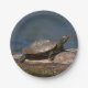 Gemalte Schildkröte auf einem Klotz Pappteller