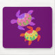Ein Paar digital gemalte Meeresschildkröten. Eins ist dunkelrot und das andere ist lila, und jedes hat eine gemusterte Muschel, zum zusammenzupassen. Schöne Meeresschildkrötekunst in einem einfachen, bunten Muster.