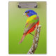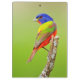 Gemalter Mann der Flaggen-(Passerina ciris) hockte Klemmbrett