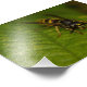 Eine gemeinsame Wespe (Vespula vulgaris) auf einem Blatt.