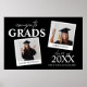 Moderne Doppel-Abschlussfeier Begrüßungspposter, das 2 Fotos der Absolventen umfasst. Das Plakat hat Vorlagentext, der "GLÜCKWUNSCH GRADS, IHRE NAMEN, JAHR DES ABSCHLUSSES und IHREN SCHULE- ODER UNI-NAMEN" lautet. Schriftart-Stile und Hintergrundfarben können geändert werden, indem Sie nach der Personalisierung auf den entsprechenden Link klicken. *Bitte schreiben Sie mir, wenn Sie Hilfe benötigen.