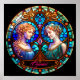 Das Gemälde ist eine atemberaubende Darstellung des Zwillingszeichens Gemini, das die ikonischen Zwillinge in all ihrer Herrlichkeit zeigt. Die Zwillinge werden als zwei junge Frauen dargestellt, jede mit einer bestimmten Persönlichkeit und Stil. Ein Zwilling ist in Silber gekleidet, mit glänzenden Haaren wie das Mondlicht, der andere ist in Gold verziert, mit feuerroten Haaren, die wie die Sonne scheinen.