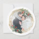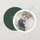 Des cartes de fin de année géométriques élégants, de forme arrondie unique, présentent votre ensemble photo préféré dans un cadre inspiré de pierres précieuses en faux feuille d'or, accentué de feuilles d'aquarelle verte et de baies rouges. Personnalisez avec votre salutation de vacances personnalisée, les noms, et l'année sur le dos en lettres blanches sur un arrière - plan vert chasseur.