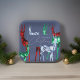Einzigartig stylische ländblaue Weihnachtspapiere mit handgemalten Wasserfarbkristall-Rentieren in drei Edelsteinsorten: Smaragd, Ruby und blauer Topaz