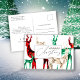 Eine einzigartige und stilvolle Weihnachtspostkarte, die mit handbemalten Rentieren aus Aquarellkristall in drei Edelsteinsorten entworfen wurde: Smaragd, Ruby und Diamant. Die Rückseite enthält eine warme Urlaubsmeldung, die Sie wie verlassen, nach Ihren Wünschen bearbeiten oder für eine leere Karte löschen können.