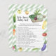 "Auf dem Weg ist ein lokal erwachsenes Baby". Feiern Sie mit diesem Baby-Dusche-Party zum Thema Wasserfarbe! Aquarellkuschel, Zwiebeln, Auberginen, Zucchini, gelbe und rote Tomaten, Rettich, Karotten, heißer Paprika, süß-gelber Paprika, Erbsen und Kohl, Brokkoli und Rüben auf einem Schneidebrett. Bio Wasserfarbenernte.