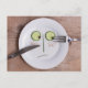 Gemüsemasse auf Tafel mit Messer und Gabel, Set auf Holzbrett - männlich, unglücklich