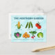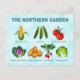 Eine humorvolle Gärtnerei an Orten mit kalten Klimazonen wie Alaska, Minnesota und Kanada. Man kann nicht alles wachsen lassen, aber die illustrierten hier ausprobieren: Yukon-Hauptkorn, Schneeerbsen, Yukon-Haupttomate, Jänner-Königskraut, Yukon-Goldkartoffel, Icicle-Radish und Iceberg-Salat. Jede ist beschriftet und Text wird gelesen, "DER NORDGARTEN" erscheint ebenfalls. Alles ist auf einem verschneiten Hintergrundbild überlagert.