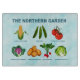 Eine humorvolle Gärtnerei an Orten mit kalten Klimazonen wie Alaska, Minnesota und Kanada. Man kann nicht alles wachsen lassen, aber die illustrierten hier ausprobieren: Yukon-Hauptkorn, Schneeerbsen, Yukon-Haupttomate, Jänner-Königskraut, Yukon-Goldkartoffel, Icicle-Radish und Iceberg-Salat. Jede ist beschriftet und Text wird gelesen, "DER NORDGARTEN" erscheint ebenfalls. Alles ist auf einem verschneiten Hintergrundbild überlagert.
