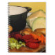Dieses Notizbuch ist mit der Herstellung einer feinen Gemüsesuppe dekoriert. Die Karotten, Rüben, Kohl, Kartoffeln, Zwiebeln, Knoblauch und Sellerie werden zerkleinert und zum Kochen im Topf vorbereitet. Die feine Kunstfotografie schafft ein fröhliches und einladendes Küchendesign.