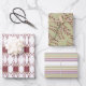 Gemustert jedes Mal Papier Blatt Geschenkpapier, ein Trio von Mustern in Streifen, und gemustertes Design in Salbei grün, bordeauxrot Rose und taupe. Die Hintergrundfarbe auf jedem Blatt kann beliebig personalisiert sein.