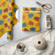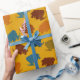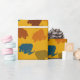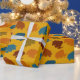 Gemusterte goldfarbene, blaue, oranfarbene Wollmam Geschenkpapier