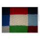 Gemusterte Stoffe, Rot Weiß und Grün in der Mitte. Andere Farben umschließen es. Gewebt.