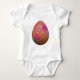Ein buntes Design eines großen Ostereis mit bunten Ostermustern in Rosa, Blau und Gelb. Ideal für die Ostersaison.