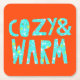 Diese helle Grafik zeigt den Satz "Cosy and Warm" in hellblau mit Schneeflocken. | Blanckslate | 141048D