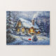 zauberhafte Winterlandschaft mit schneebedeckter Hütte, die mit einem leuchtenden Weihnachtsbaum geschmückt ist und im Stil der Ölmalerei schön ausgeschmückt ist.