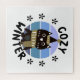 Eine niedliche Eule mit Winterschal und den großen Worten glücklicher Winter. Für alle, die Lieben Winterschwärme und niedliche Tiere.