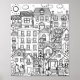 Schwarz-Weiß-Design für eine entspannende Farbgebung, skurrile, gemütliche Stadt mit Häusern und niedlichen Katzen, finden und Farbe alle Katzen, die sich in dieser Stadt versteckt.