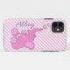 Durchbrennenherz des niedlichen Elefanten formte Blasen auf einem Süßigkeitsrosa-Streifenmuster. Niedlicher Mädchen iphone 5 Fall, personifizieren mit Ihrem Namen. Dieses Beispiel liest: Abtei. Einzigartig entworfen und illustriert durch Sarah Trett.