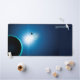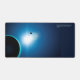 Image stylisée dans les tons bleus et blanc de la Terre et de la Lune rétroéclairée par le soleil. Une traduction anglaise de Genèse 1:4 qui disait "Dieu a vu que la lumière était bonne, et Dieu a divisé la lumière de l'obscurité" apparaît également en bleu et blanc éclatant.