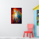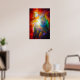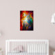 Dieses christliche Vintage Poster besticht durch ein farbenfrohes, lebendiges und Christliches Vintages Raumdesign. Mit schönen blauen rot-gelben und orangefarbenen Farben. Sieht aus wie abstrakte Weltraumwolken. aus einem Vintagen Foto aus den 1900er Jahren. Die Bibelgenese. 1 Im Anfang erschuf Gott.