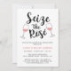 Roséwein-Degustation Party Einladung in Schwarz, Weiß und Rosa mit einem Wortspiel auf Seize der Tag: Nehmen Sie den Rosé. Mit zwei Gläsern und einem hübschen Drehbuch. Auch geeignet für Rosé-Brautpartys oder Rosé-Geburtstagsfeiern. Ändern Sie einfach den benutzerdefinierten Text in den Anzug Ihres Ereignisses. Rosé themed Event Einladung mit Rosa als Akzent Farbe.