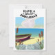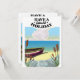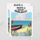 Genießen Sie einen herrlichen Urlaub, ein Fischerboot auf einem sandigen Strandplakat in einem Vintagen Stil.