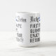 Ein Geschenk für jemanden, der in Rente geht. Altersgeschenk für einen Arbeitskollegen. Tasse der Rentenzahlungen. Zeitungsüberschrift Design. Personalisieren Sie mit dem Namen der Person, die in Rente geht. Genießen Sie Ihre Ruhestandsmeldung.