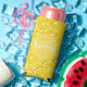 Genießen Sie Sommerlemonen Limone Scheiben Sommer Selters Dosenkühler