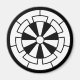 Dieser KAMON heißt in Japan "Genji-guruma". Der Genji-Karren, auch als Gosho-Guruma (Warenkorb für den Kaiserpalast) bezeichnet, wurde oft symbolisiert, indem nur das Rad des Wagens dargestellt wurde. Nach der Fujiwara-Zeit wurde das Rad in dekorativen Mustern dargestellt und später als Familienkresse verwendet.