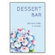 This wedding tabletop sign features a minimalist design with a soft pastel color palette of blue and pink. The layout includes bold serif typography for "DESSERT BAR" and a delicate phrase "please take a treat!" set against a light sky blue background. A cluster of realistic hydrangea flowers in pastel tones adds an elegant touch, creating a gentle and welcoming mood perfect for inviting guests to enjoy sweet treats at your event.