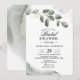 Eine Eukalyptus-Outdoor-Einladung ist eine wunderschön gestaltete Einladung, die sich perfekt für jede Outdoor-Veranstaltung oder Ansammlung eignet. Die Einladung zeichnet sich durch ein elegantes und rustikales Design aus, mit üppig grünen Eukalyptus-Blätter als Schwerpunkt. Die Blätter dienen oft als natürliche Rahmen oder Rahmen für den Text und die Grafik der Einladung und schaffen so ein anspruchsvolles und einladendes Aussehen. Diese Einladungen werden häufig für Veranstaltungen im Freien wie Hochzeiten, Gartenfeiern und andere naturbelassene Party genutzt. Sie können so angepasst werden, dass sie die spezifischen Details des Ereignisses, wie Datum, Uhrzeit, Ort und UAWG, enthalten. Einige Eukalyptus-Einladungen im Freien beinhalten auch zusätzliche Designelemente wie Blumenakzente, Aquarellbilder oder Kalligraphie-Schriftart, um eine zusätzliche Touch an Eleganz zu schaffen.