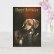Diese Geburtstagskarte ist mit einer jungen Gentleman-Dackel illustriert. in seiner besten Kleidung.