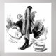 Ein schlanker, eckiger Gentleman mit gestreiften Hosen und einem Monokel liest Puck-Magazin. Er sitzt mit langen Beinen gekreuzt und sein Hut über dem Oberknie. Ein Spuktoon Erholungen auf dem Boden vor ihm. Aus dem 19. Jahrhundert (1880) ist die Tinte über dem Bleistift gezeichnet von Friedrich Graetz. Alle Rechte vorbehalten © 2013 padre art