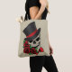Der Schädel des Gentleman ist in seinem feinsten Hut mit roter Bogen-Krawatte und rote Rosen gekleidet.