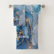 Ensemble de serviettes chic en géode d'agate bleue et monogramme or. Vous pouvez personnaliser le nom, le monogramme et personnaliser la police et les couleurs pour créer votre propre design unique. Conçu par Thisisnotme©
