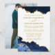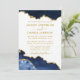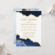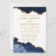 Moderne elegante Watercolor Blue and Gold Marble Agate Geode Wedding Invitation Card - Weißer Hintergrund mit Goldenen Script - Foto Back