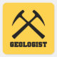 Geologist - Gelb- und Schwarz-Aufkleber mit gekreuzten Gesteinshammen, grafisch und im Kollegialstil.