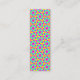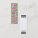 Eine Vorlage für die Visitenkarte im Lesezeichen-Stil. Ein abstraktes geometrisches Muster auf der Vorderseite. Das Design auf der Rückseite ist oben und unten mit einem geometrischen Muster aus einem speziellen Symbol Schriftart, die Eingabe einer beliebigen Zeichenkette von fünf wiederholten Buchstaben erstellt ein anderes Muster so viel Spaß zu experimentieren. Unter der Dekoration oben steht das Wort "LESEZEICHEN" und darunter ein großer Leerbereich, der für kleine Notizen verwendet werden kann, z.B. eine wichtige Seite, ein Kapitel oder Verse Referenzen, auf die Sie sich gewollt haben. Offensichtlich sehr nützlich, wenn Sie eine Menge Bücher studieren. Ganz unten, direkt über der Fußbodendekoration, befinden sich Textfelder für einen Firmennamen und eine Website-Adresse, da es sich um eine Visitenkarte sowie ein nützliches Lesezeichen handelt und auch als Werbemittel gedacht ist. Während die Geschäfts- und Kontaktdaten minimal behalten wurden, kann das Design auch bei Bedarf weiter angepasst werden. Alternativ können diese geschäftlichen Textfelder gelöscht werden, wenn die Karten ausschließlich als Lesezeichen für den persönlichen Gebrauch bestimmt sind, oder Sie können stattdessen Ihren Namen und Ihre Telefonnummer oder eine E-Mail-Adresse angeben.