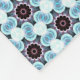 Komplexe geometrische Muster wiederholen sich in einer symmetrischen Formation in Blau, Schwarz und Weiß. Das Design konzentriert sich auf zirkuläre Motive, die einen visuell ansprechenden und ausgewogenen Effekt erzeugen sollen.