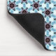 Komplexe geometrische Muster wiederholen sich in einer symmetrischen Formation in Blau, Schwarz und Weiß. Das Design konzentriert sich auf zirkuläre Motive, die einen visuell ansprechenden und ausgewogenen Effekt erzeugen sollen.