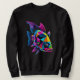 Bold sweatshirt showcasing colorful geometric fish. Great for fishing fans and art enthusiasts.